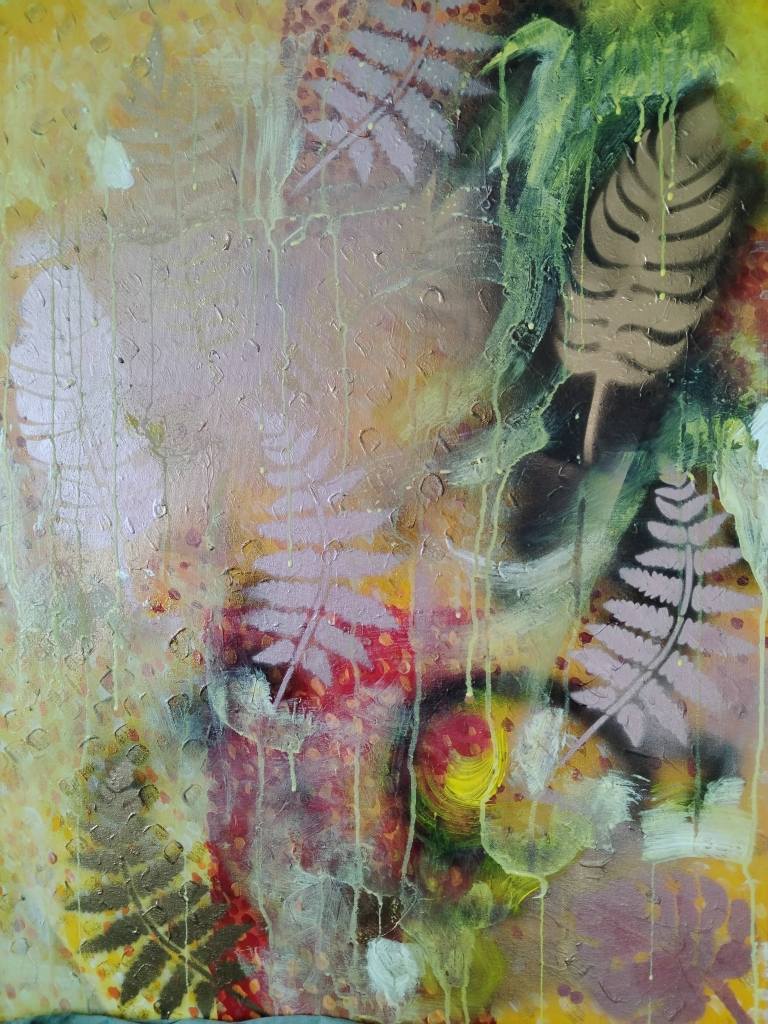 J'ai recyclé une de mes toiles abstraites faites il y a deux mois, et j'ai continué à la peindre !